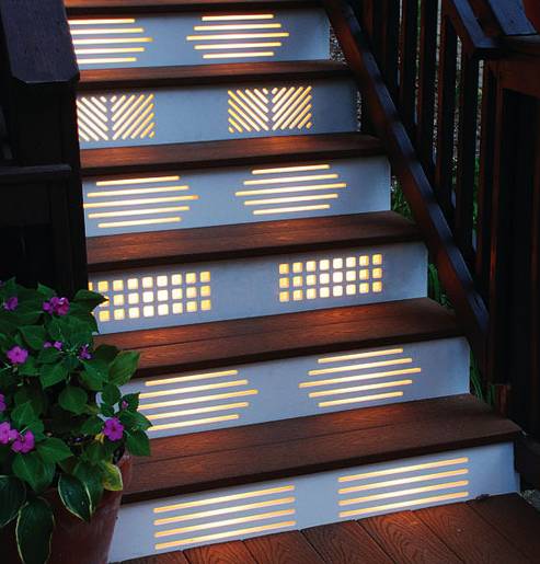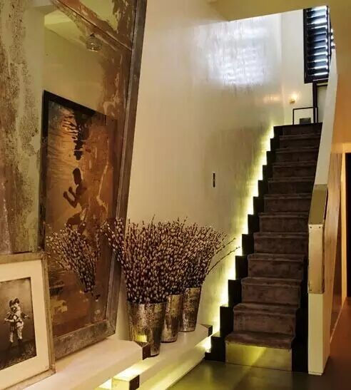 編輯點評:將射燈安置于樓梯面下端,透光處也做精彩的花紋處理,細節之處更顯家的精致跟珍貴。小巧的縫隙足夠點點光照潑灑出來,小巧的光源聚合在一起便能滿足大空間的照明需求。