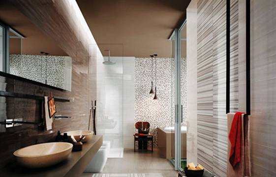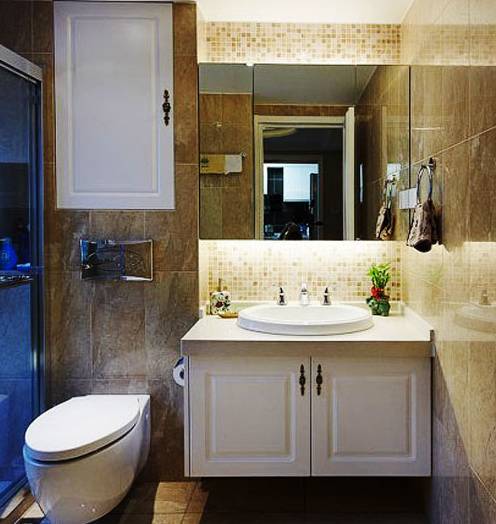 編輯點評:如果衛浴空間教導,那么射燈可以不局限于洗漱區周圍,還可安置于墻頂上方,狹長的處理來滿足更多空間光照。再加點大燈,大空間一樣可以明艷。