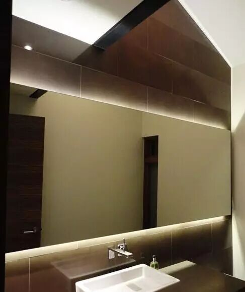 編輯點評:射燈也可安在盥洗室里充當鏡前燈,兩排長方形的射燈“擺放”在衛浴鏡的兩側,光線從里面投射出來,給小空間提供了大光線。單獨開啟時,則是一盞射燈,壁燈,別有一番意境。